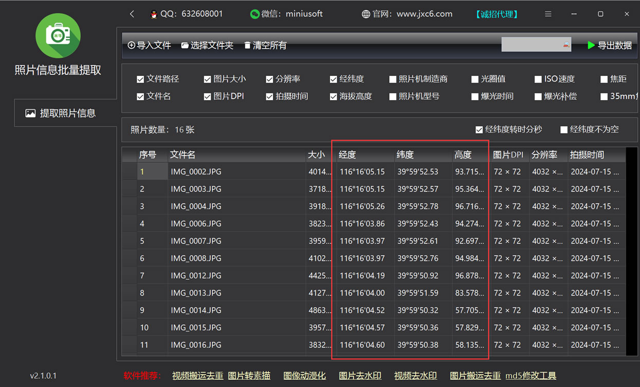 精准定位:批量提取照片的经度、纬度、海拔高度。
